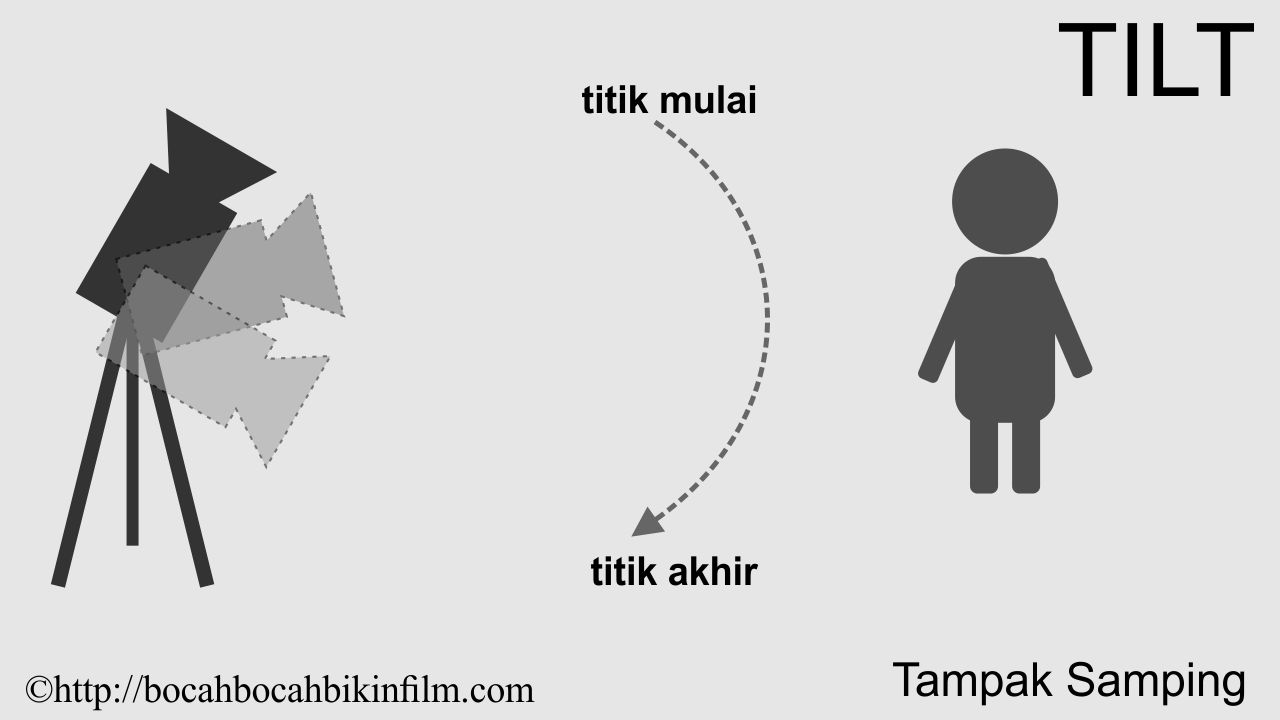 Tilt hampir sama dengan pan di mana kamera pada posisi tetap, tetapi kamera bergerak ke atas dan ke bawah pada porosnya, seperti kepala yang sedang mendongak atau menunduk. Tilt-up yang lambat dapat sangat efektif dalam membuat subjek tampak lebih besar atau lebih signifikan, sementara tilt-down memiliki efek sebaliknya.
